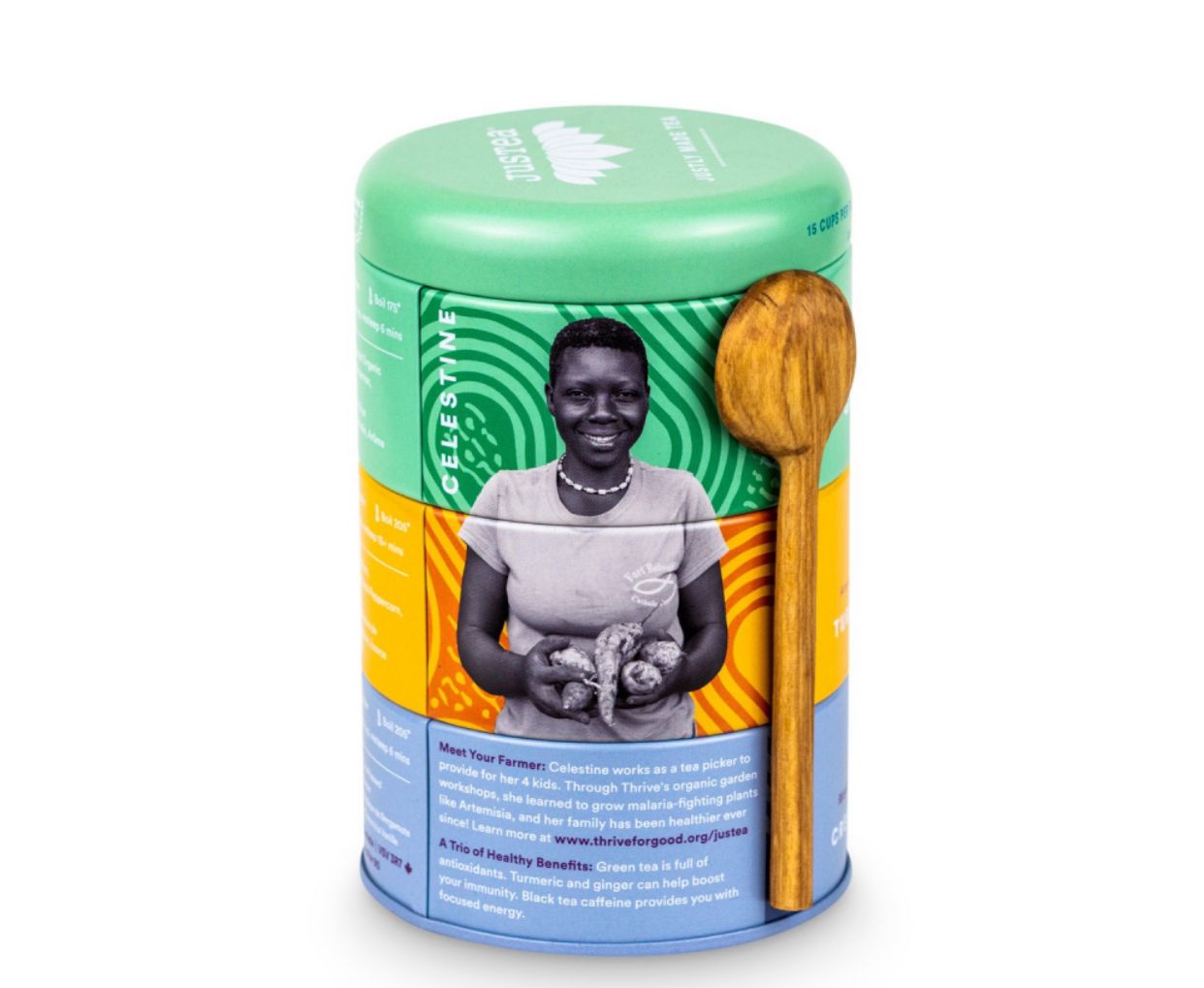 يحتوي الشاي الذهبي على الشاي الأخضر من كينيا والأرز البني العضوي المحمص والبابايا والفلفل الأسود والقرفة ونكهة جوز الهند الطبيعية.